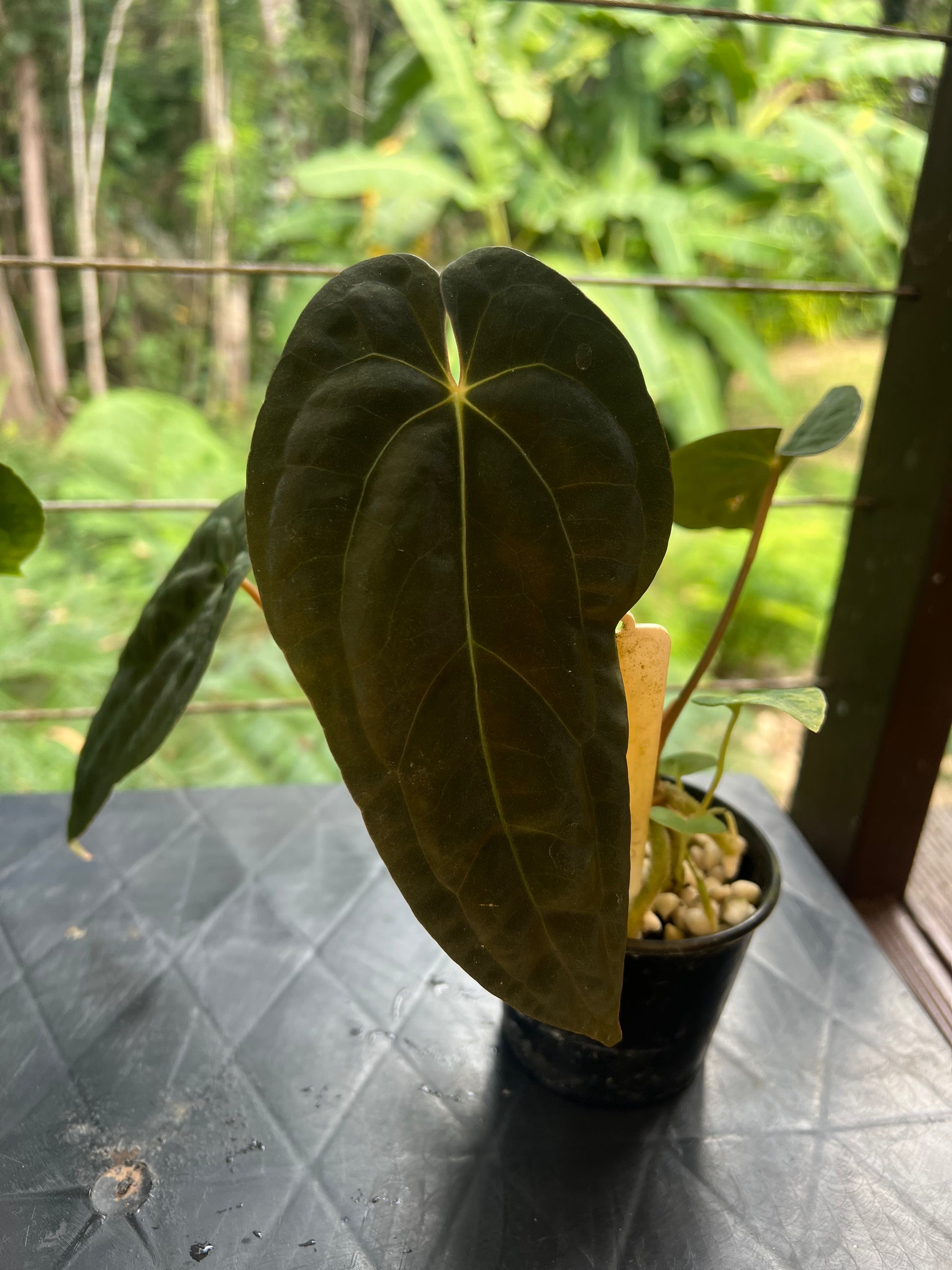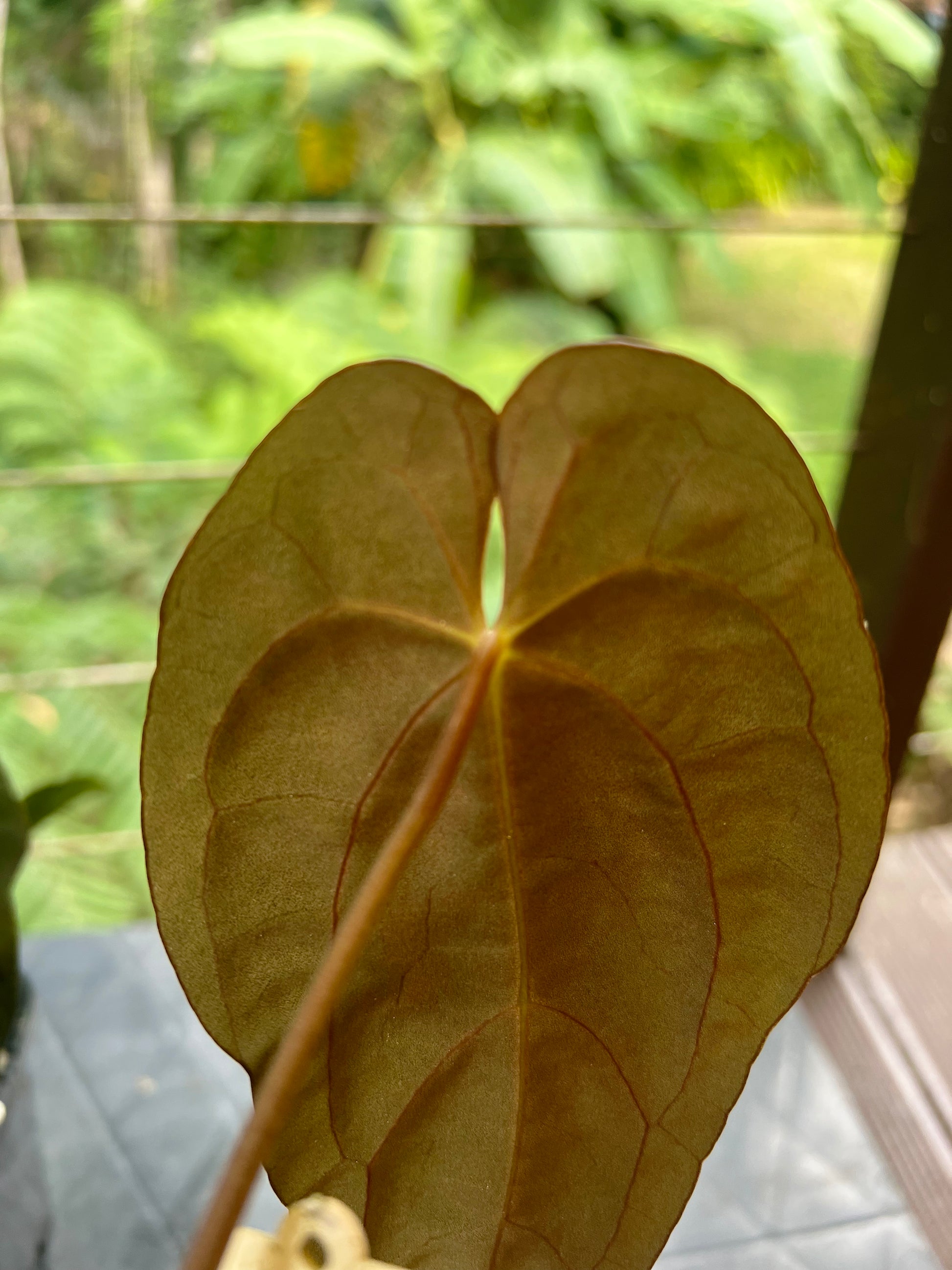 Anthurium pap x dress with some nice red abaxial veining + extra papillilaminum hybird