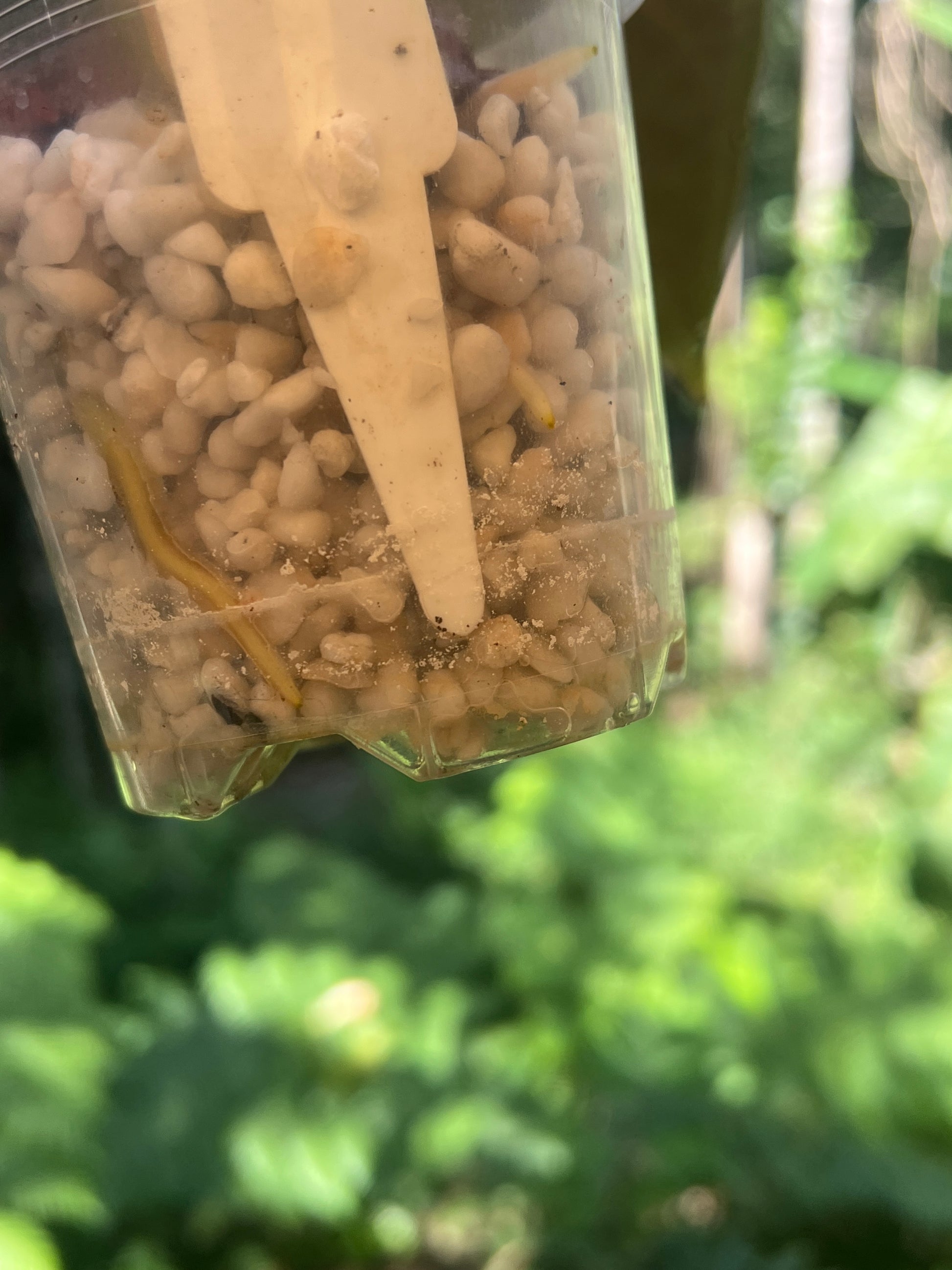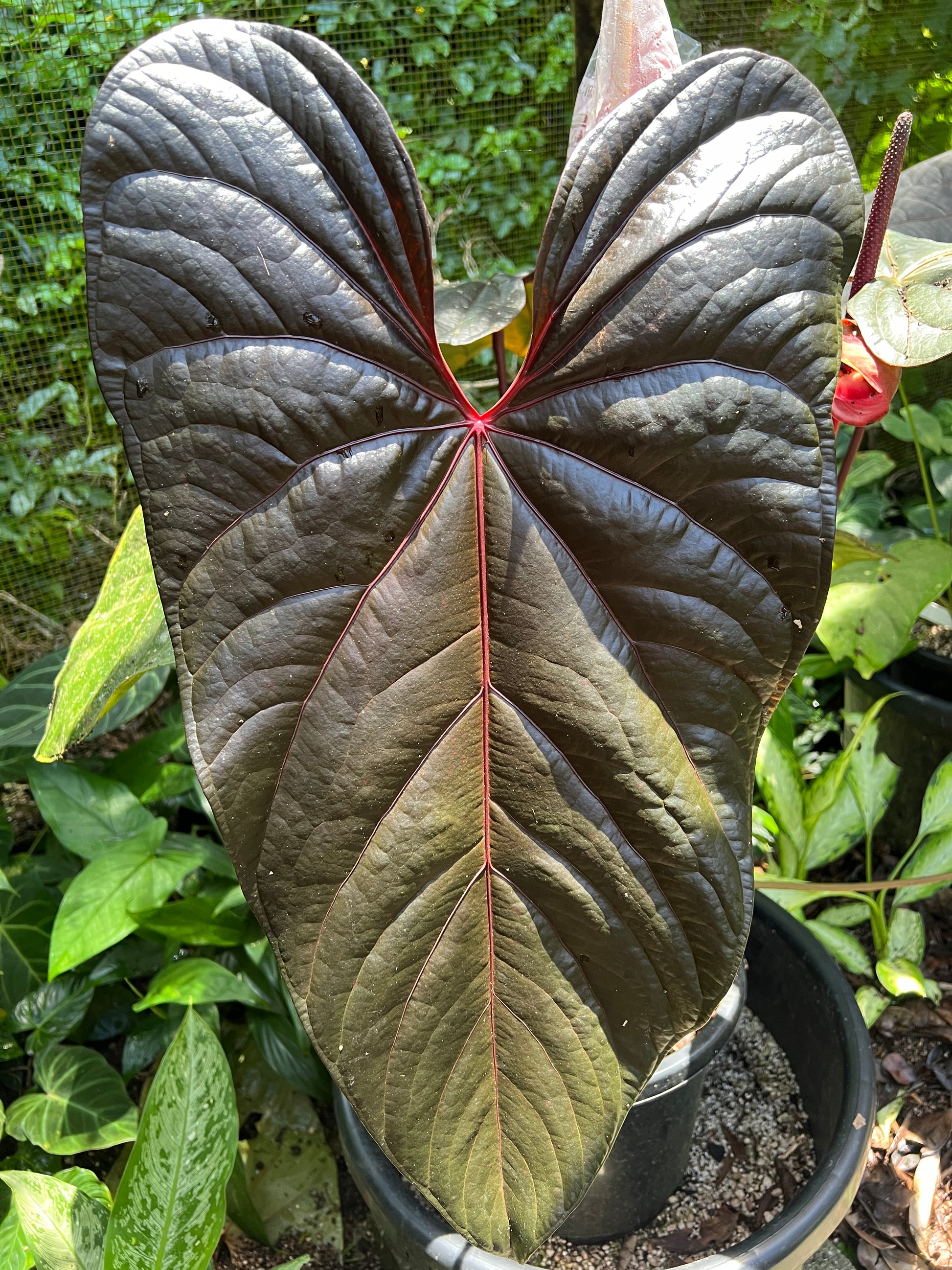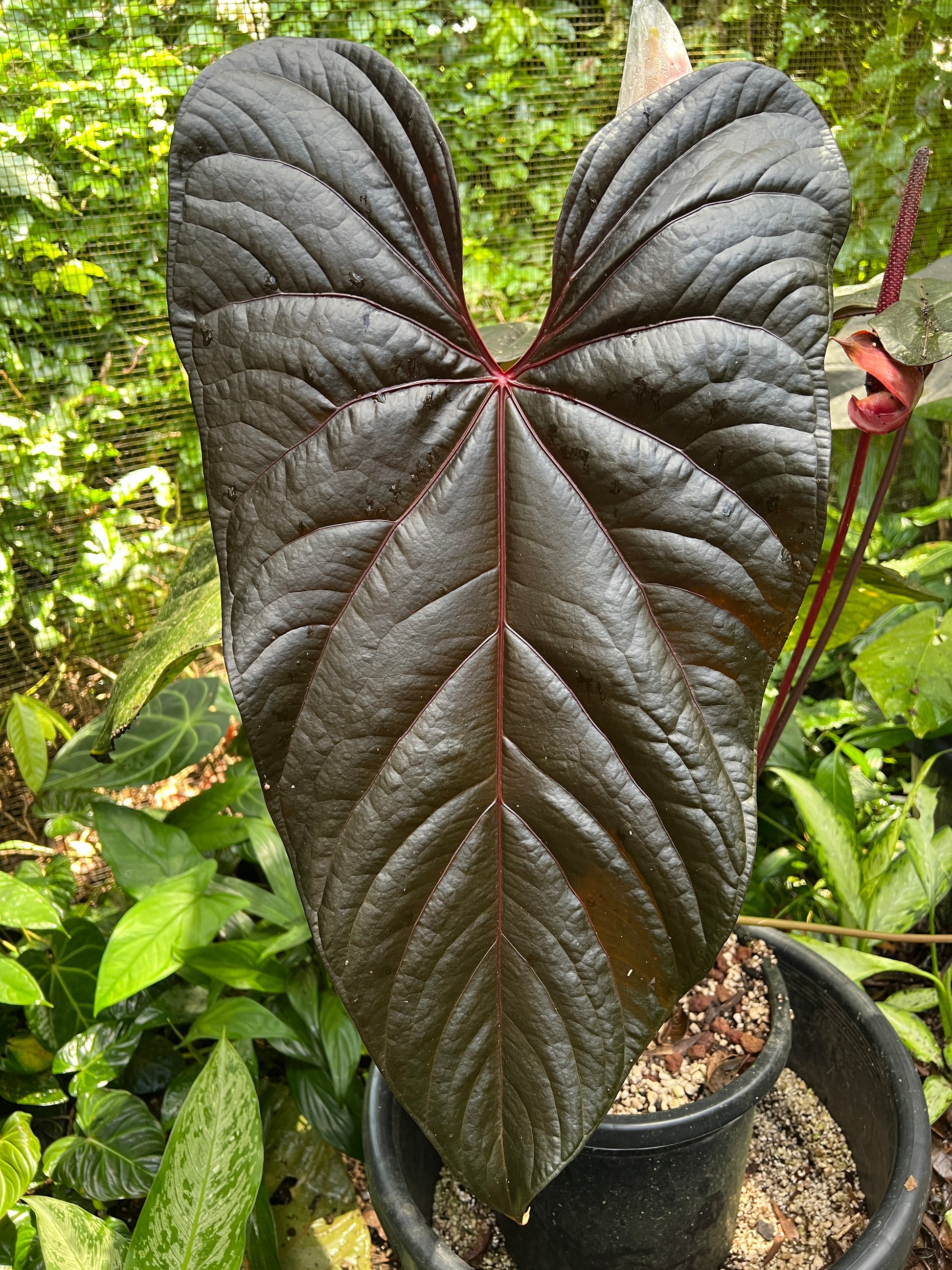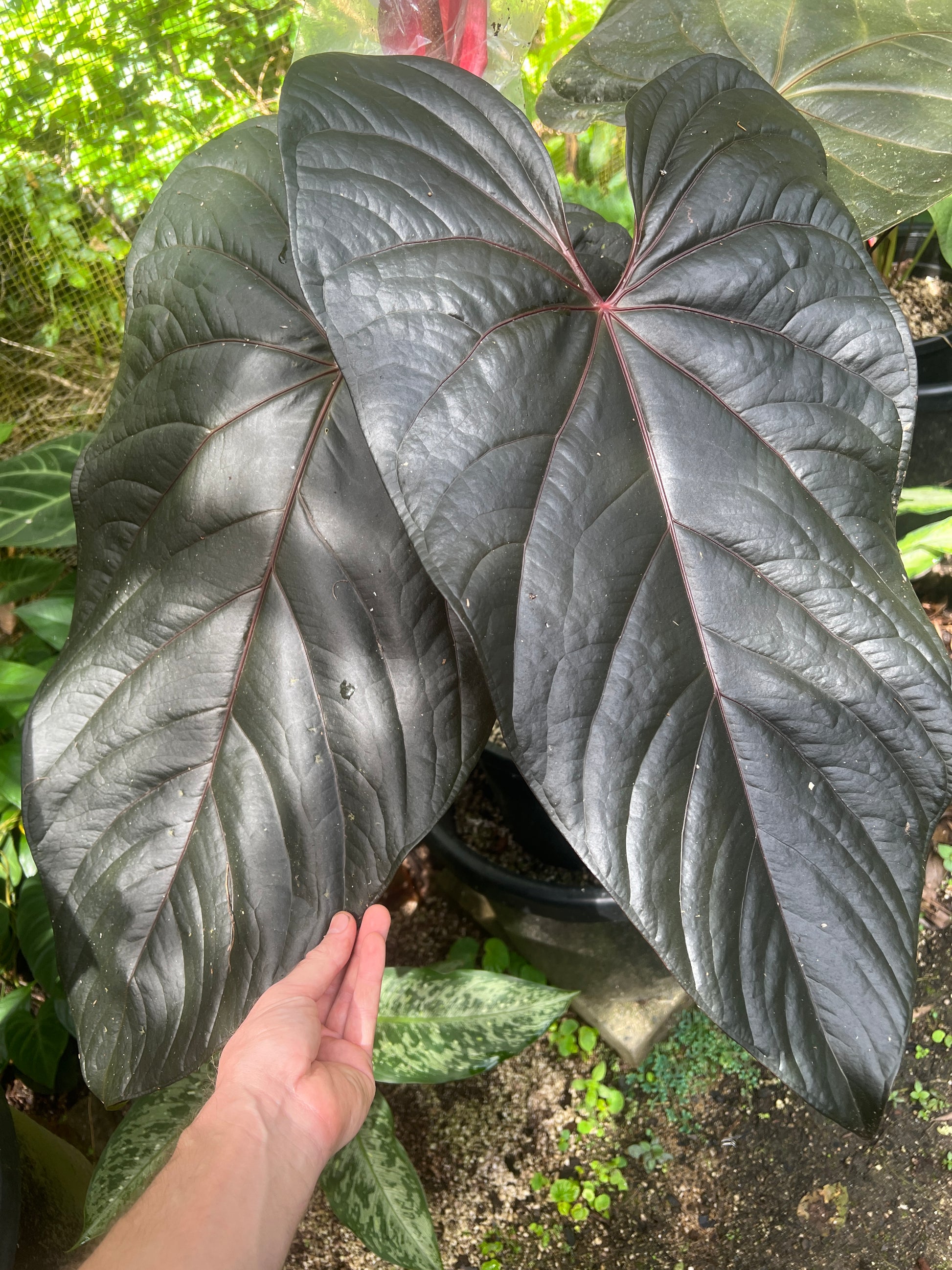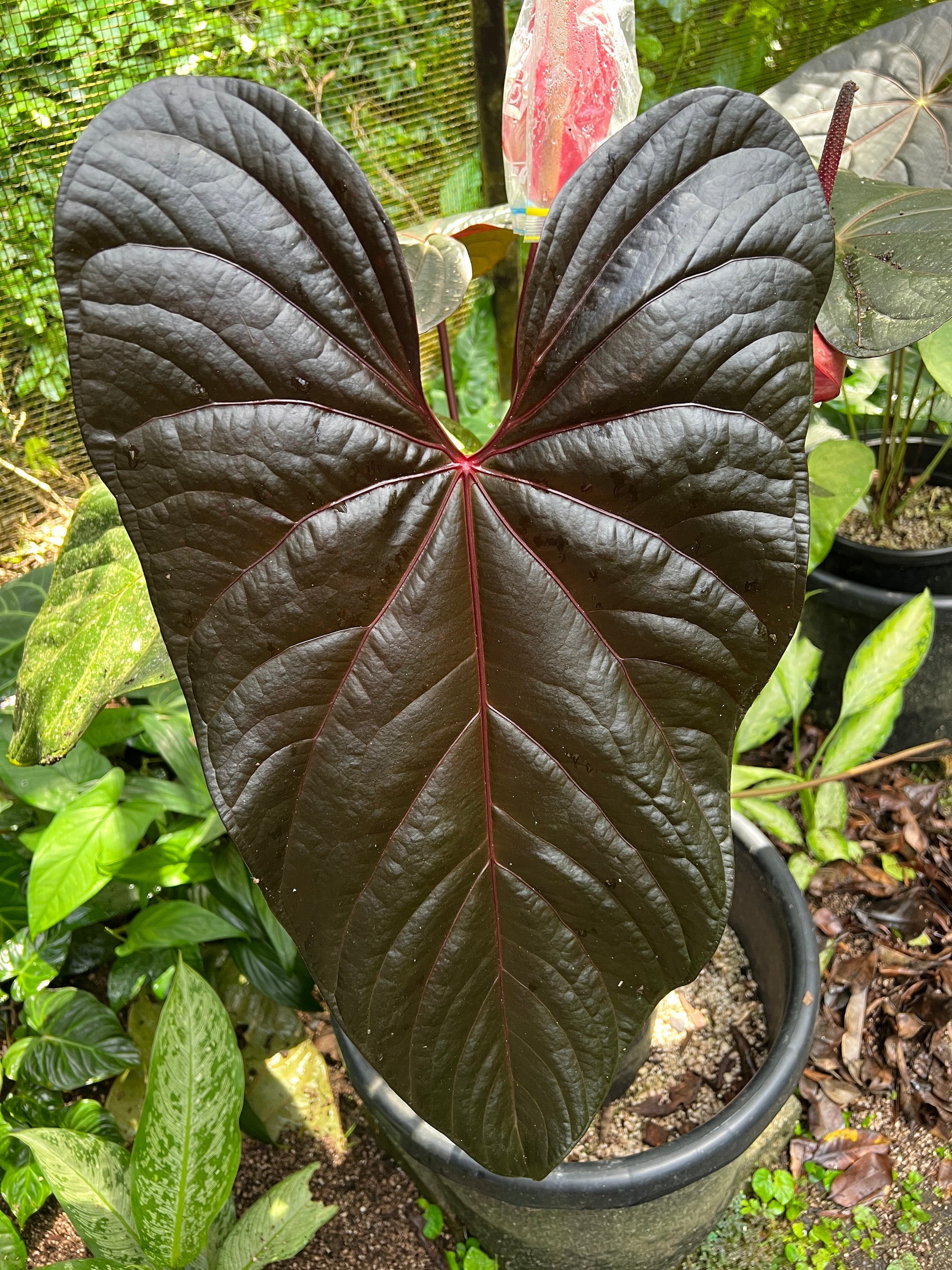 Sang x moody ‘metalic’ this one has a quite metallic grey leaf, veins come out red turning to a nice purple maroon as the leaf hardens, can hold 3-4 nice darker coloured leaves. This is a rooted little prop from the plant shown. It can be pollinated with velvet types successfully with small yields (semi-fertile).