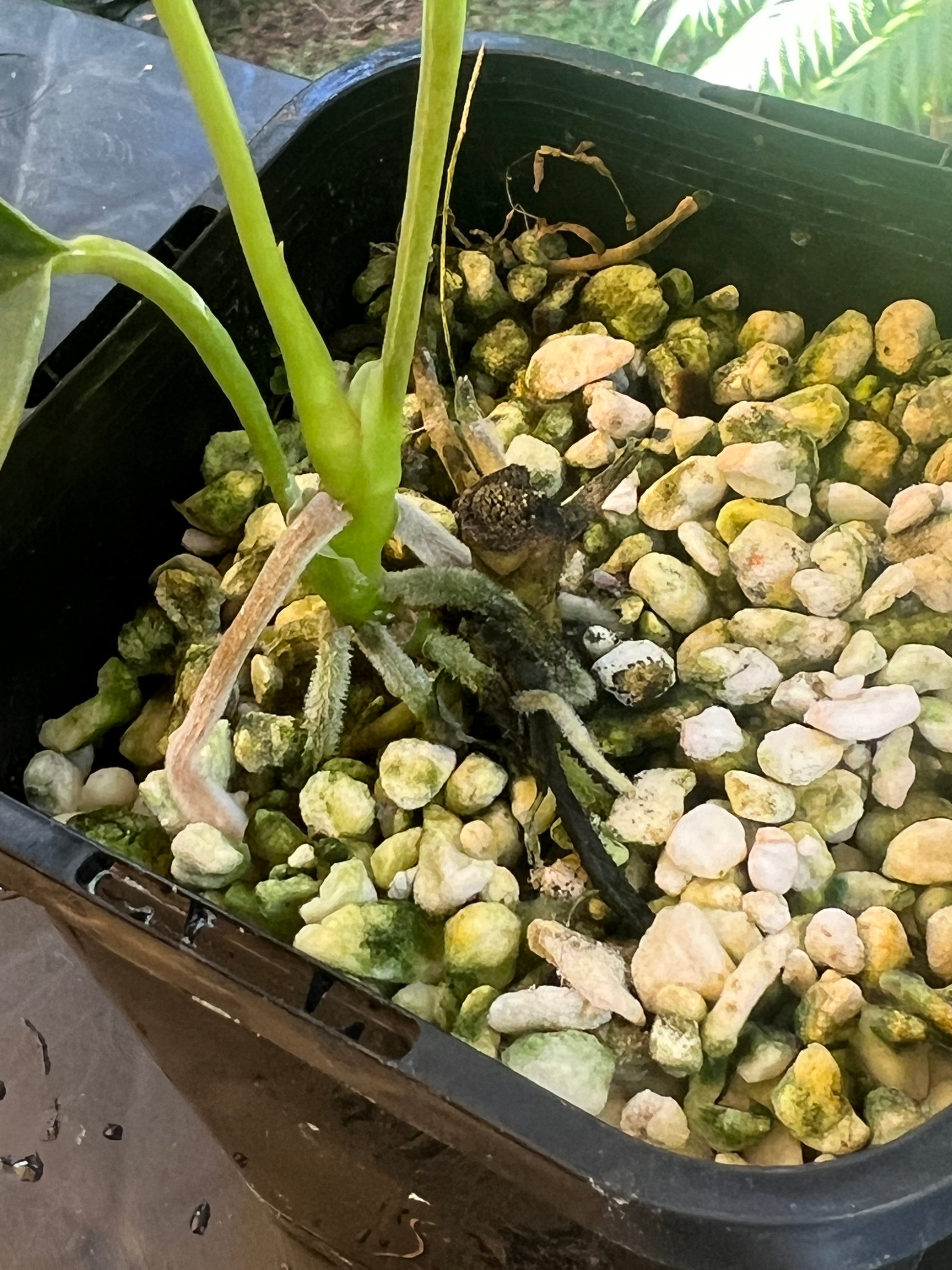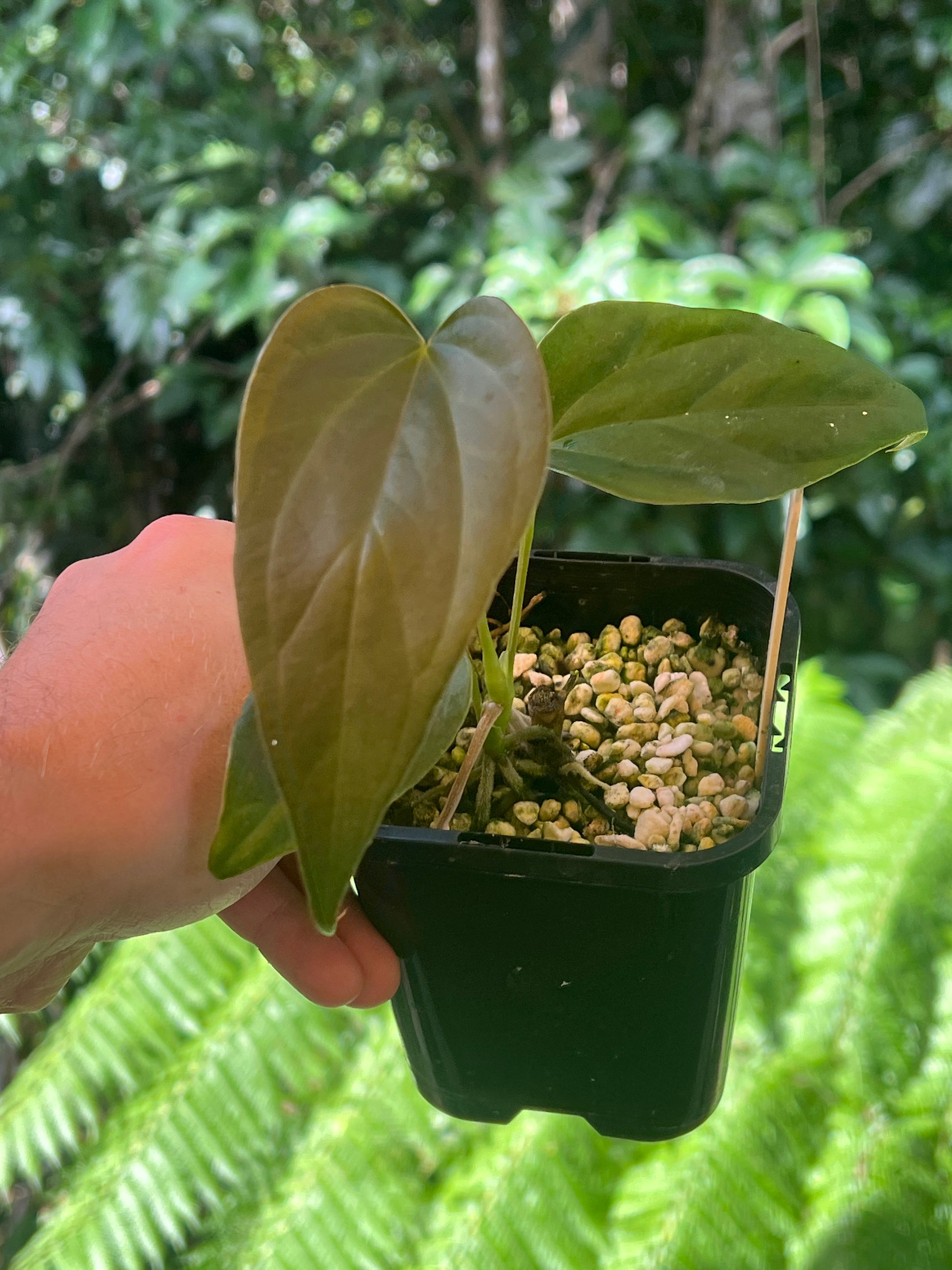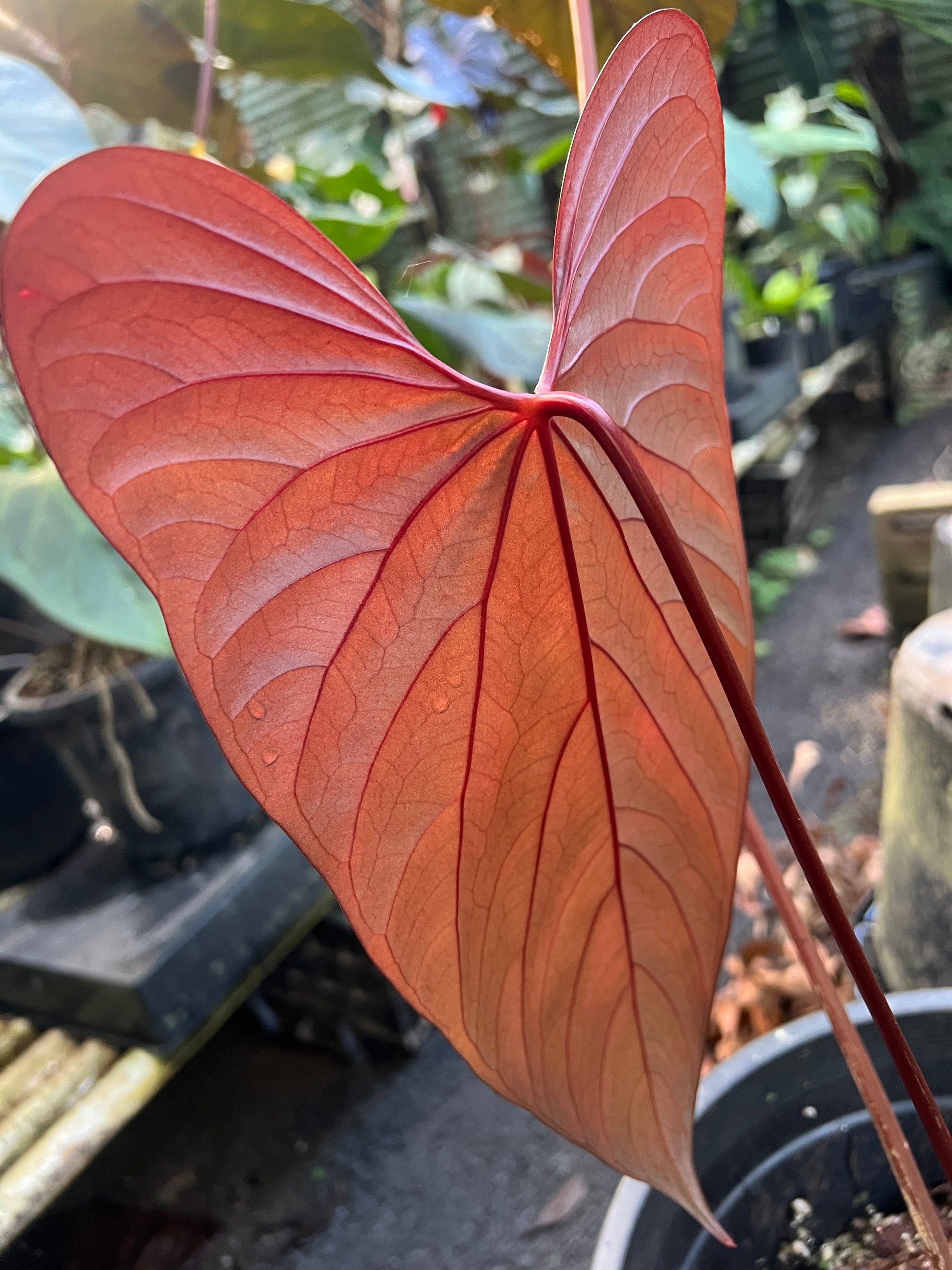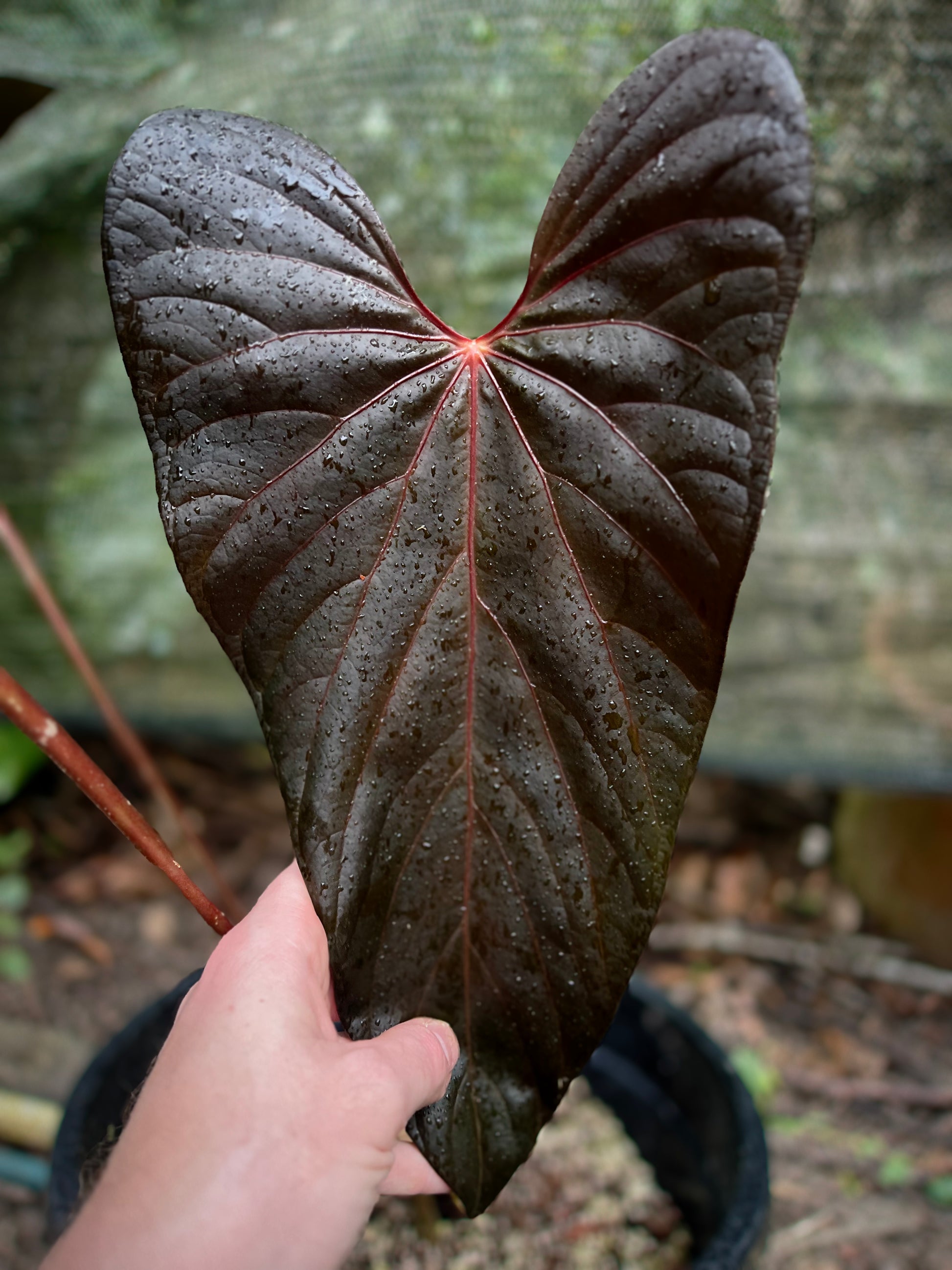 This is a clone from another of our sang x moody selections this one is more narrow, elongated with a sharp tip. I think this would pair well hybridised in the future with a narrow velvet hybrid. Veins and new leaf are red.