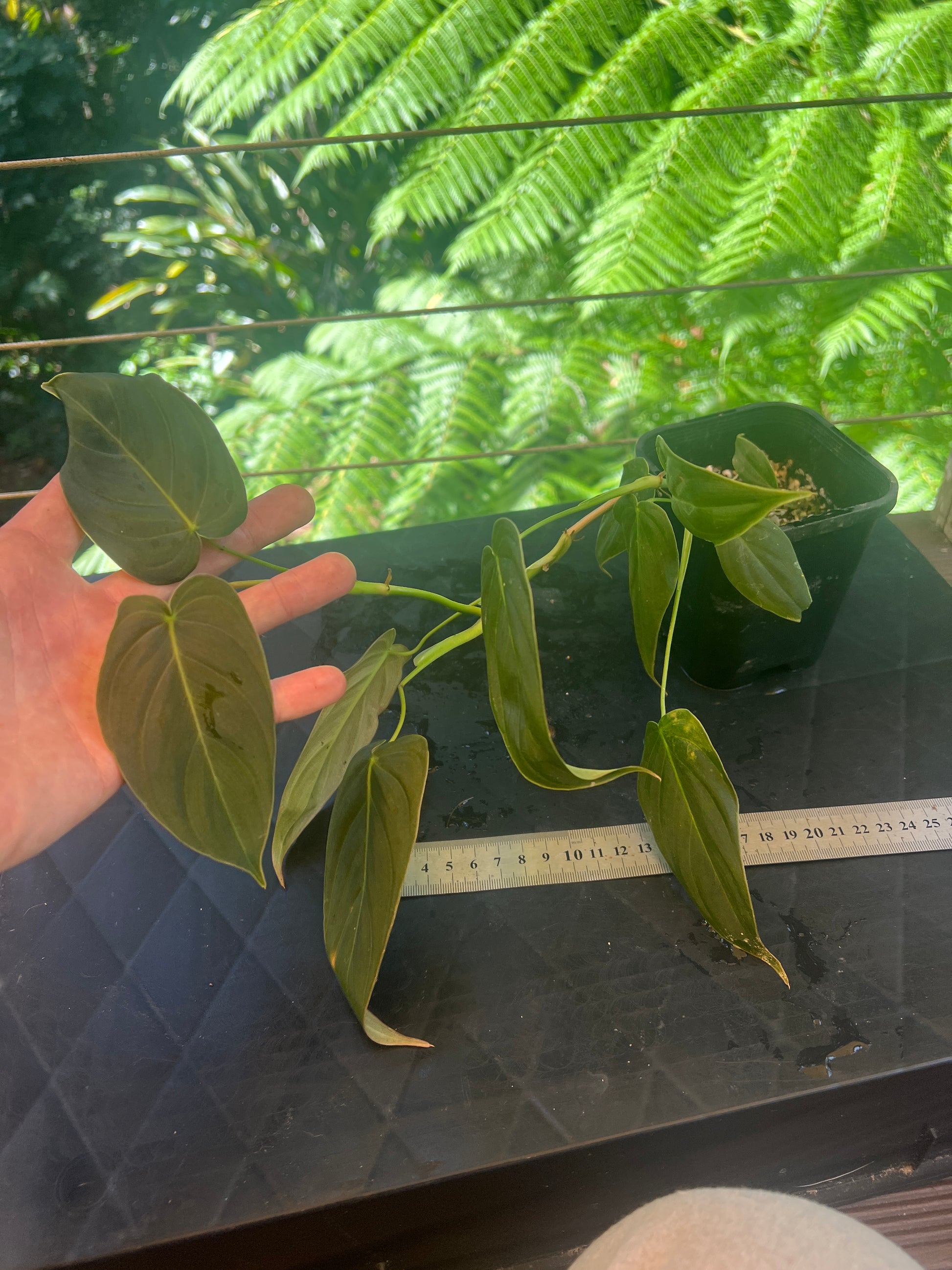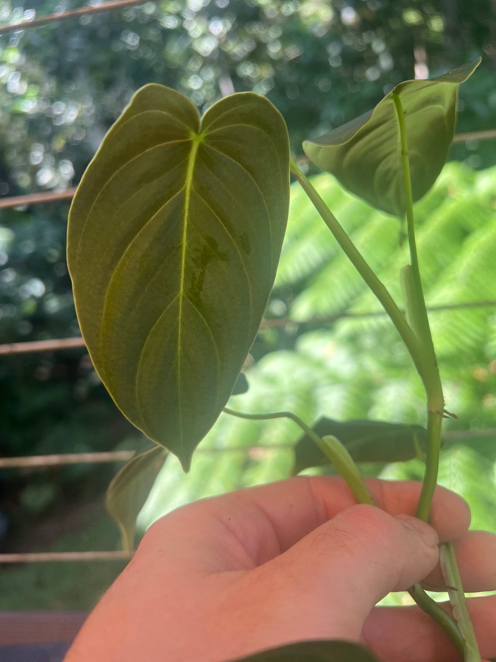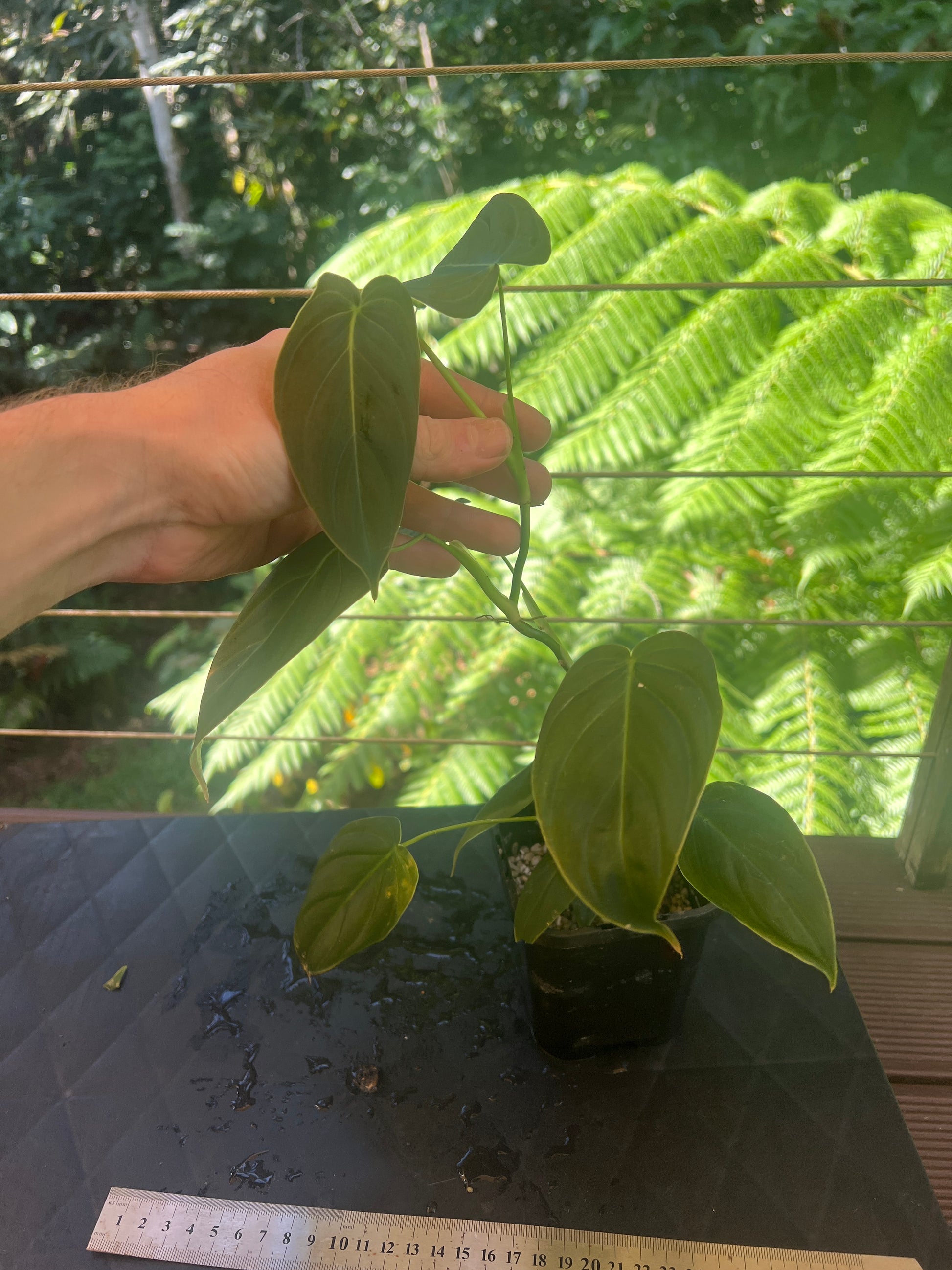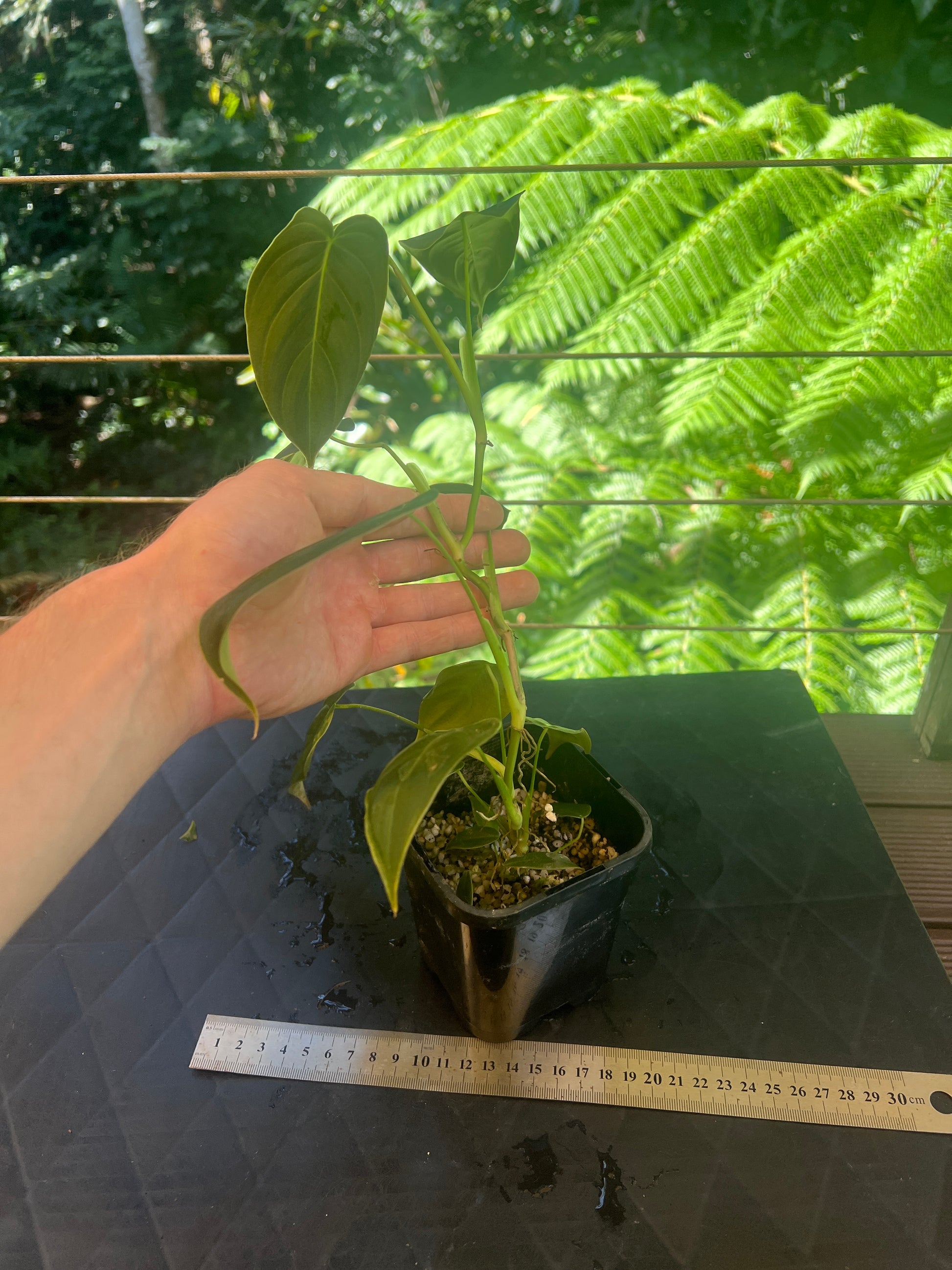 Philodendron melanochrysum x sharoniae this is a new hybrid, pollinated and grown from seed by us, we are unsure yet how they will look at maturity but they look like they will be dark and I know they will get big! This is ready for a pole