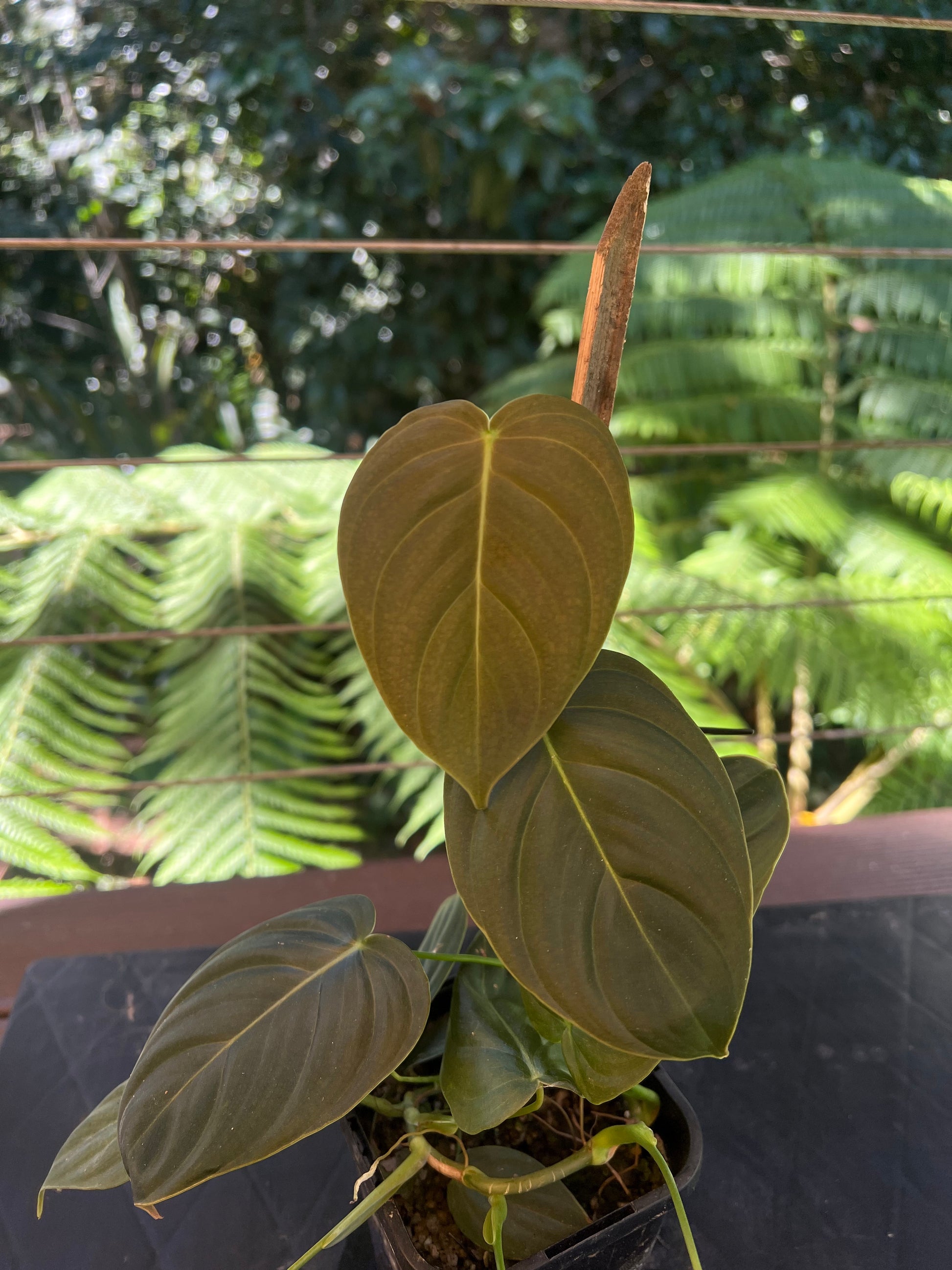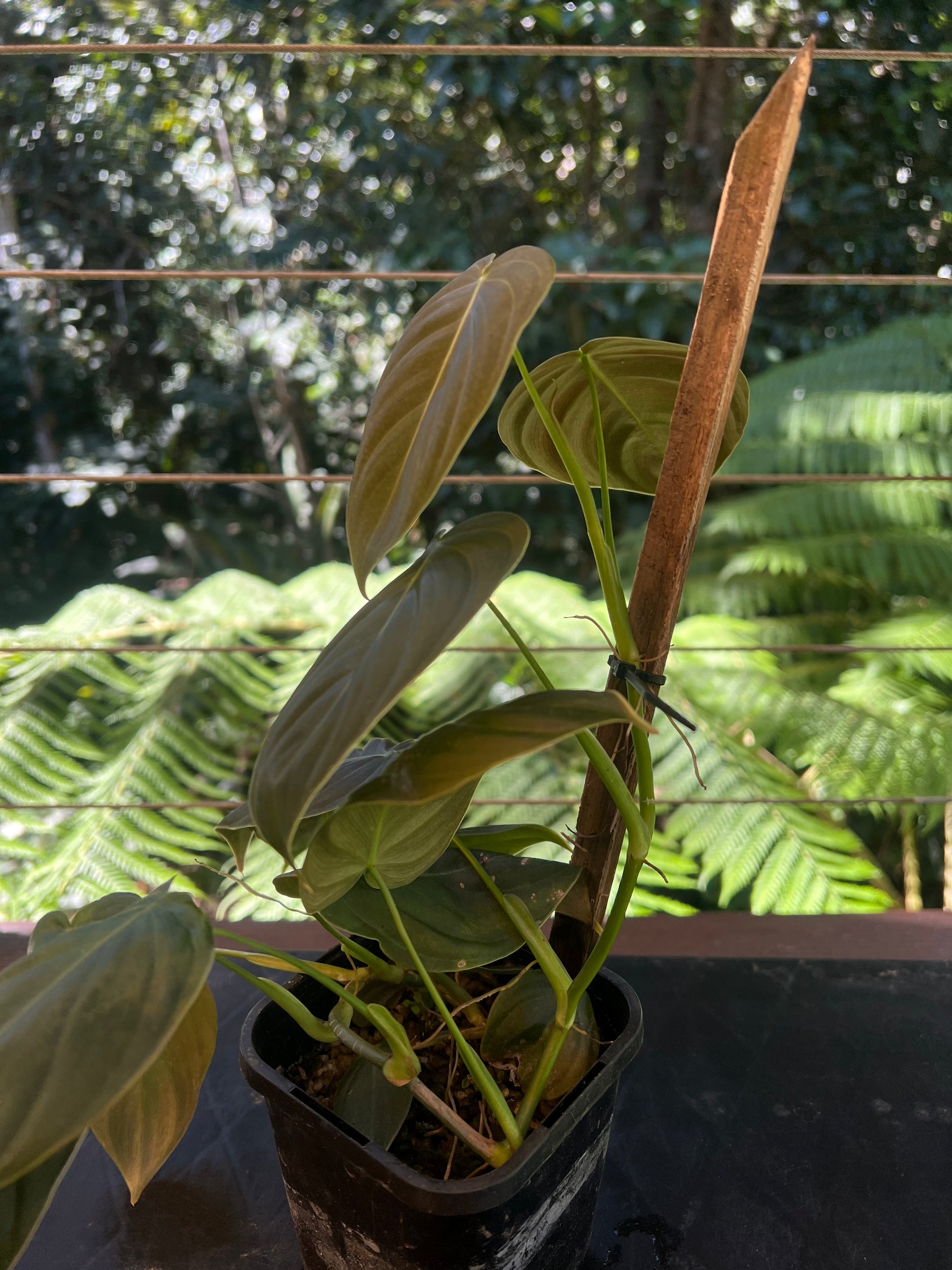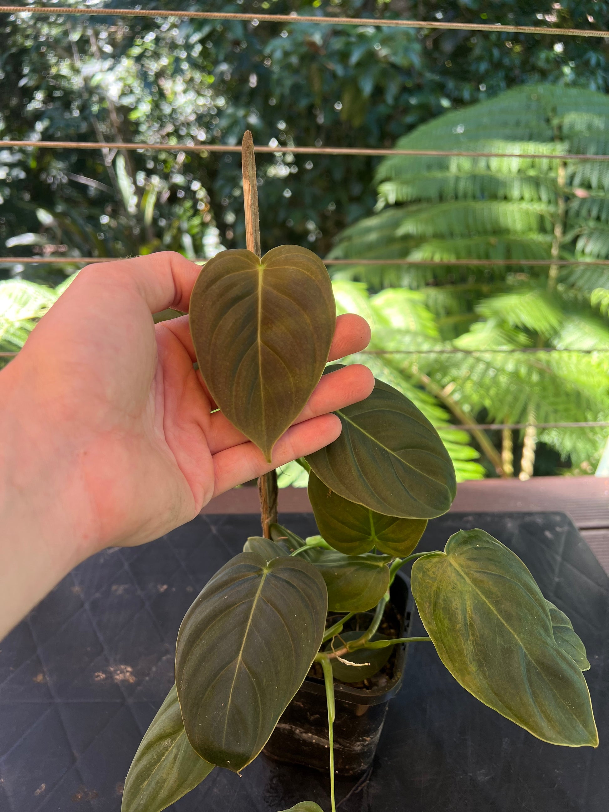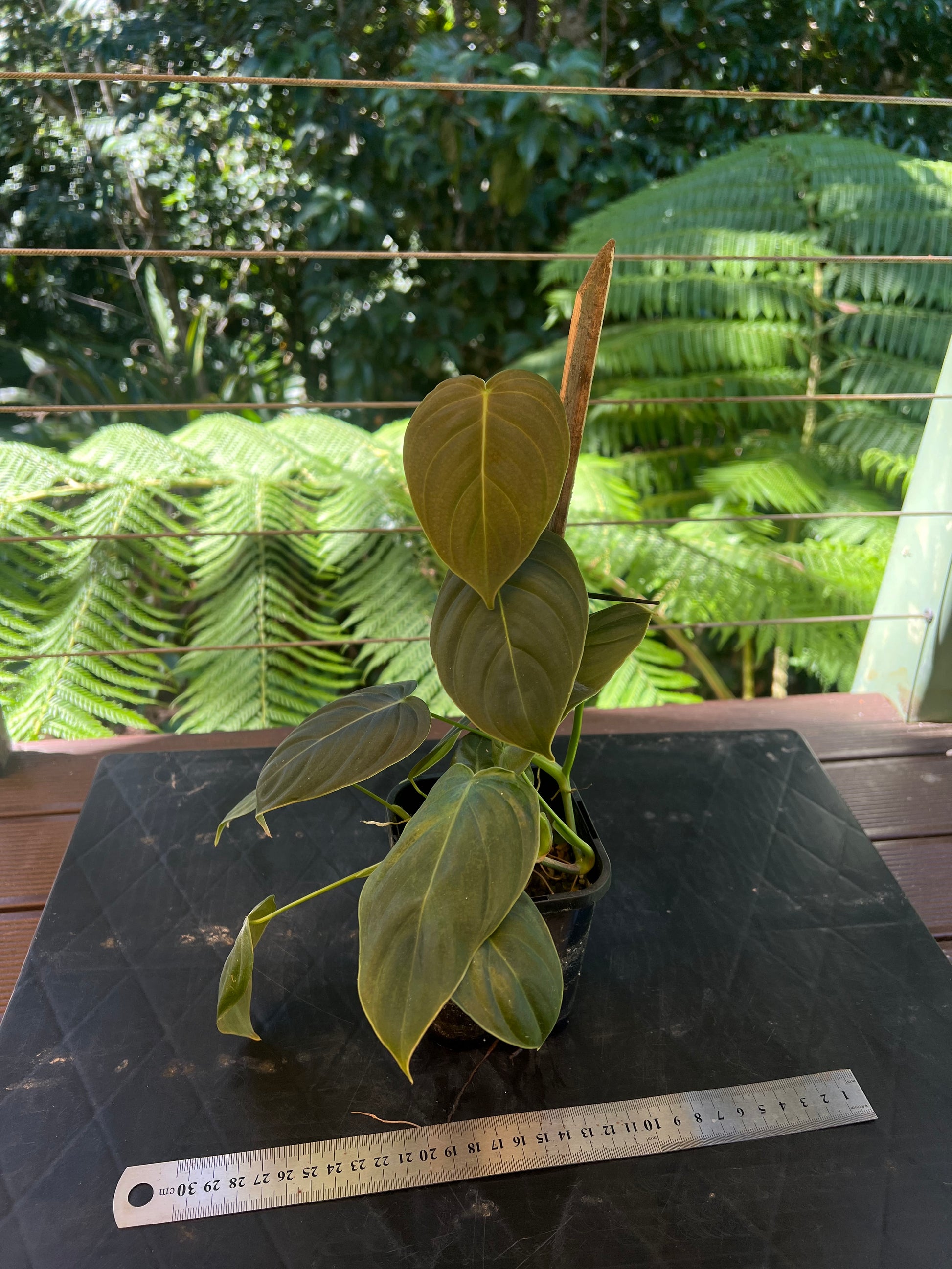 Philodendron melanochrysum x sharoniae this is a new hybrid, pollinated and grown from seed by us, we are unsure yet how they will look at maturity but they look like they will be dark and I know they will get big! This is ready for a pole